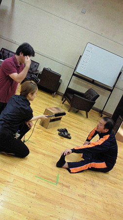稽古場では、稽古に入る前、冒頭に流れるビデオ映像の撮影がおこなわれました。